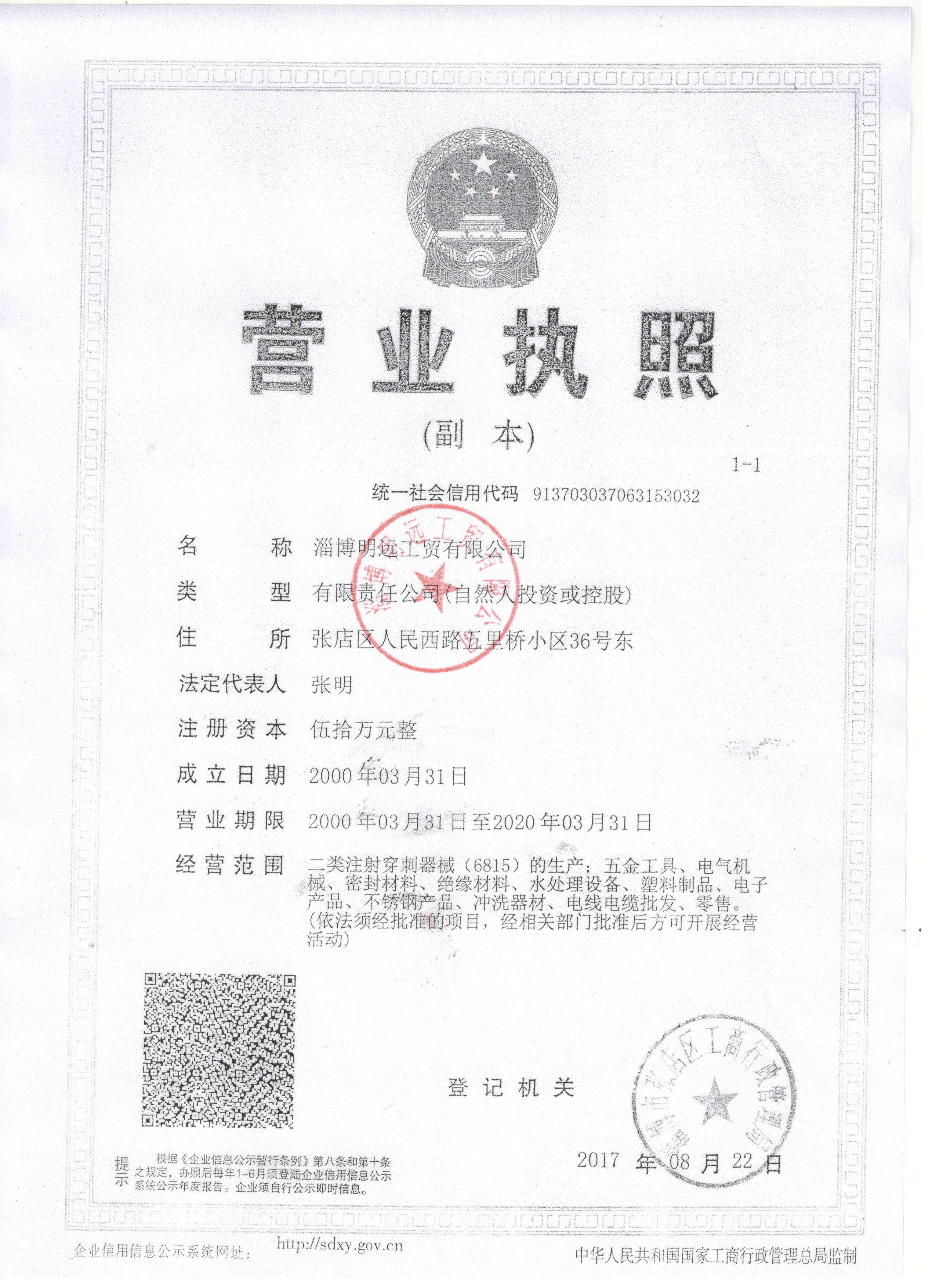 淄博明遠工貿有限公司 公司成立于2000年,是二類醫用穿刺器械專業生產廠家。公司以微創手術器械為發展方向,產品以各類特種穿刺針為主。我們以全方位的管理手段,嚴格地控制產品品質.歡迎您選用我公司產品并對我們的產品提出建設性的建議和意見.我們愿意成為您好的生意伙伴和知心朋友。